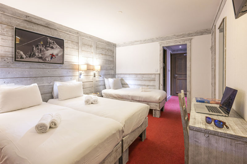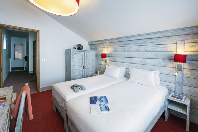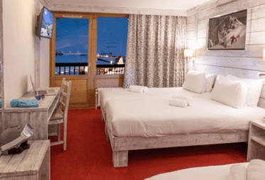 Our Comfort Privilege Connecting bedrooms is equipped with two 140×200 double bed (or two single beds on request), a TV screen, an en-suite shower room, toilets. This room can host up to 4 adults. This type of room offers a South Facing view with a balcony and a West facing view, and is located on the second, third or fourth floor.