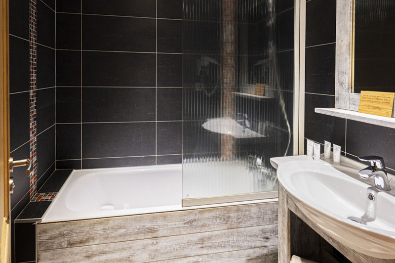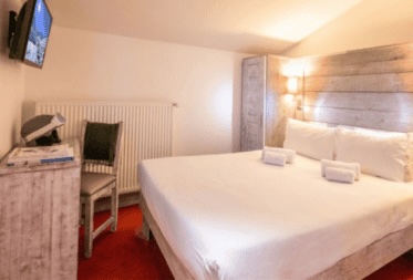 Our Comfort Connecting bedroom is equipped with two 140×200 double bed (one room can be made of two single beds on request), a TV screen, an en-suite shower room, toilets. This room can host up to 4 adults. This type of room offers a West facing view and is located on the second, third or fourth floor.