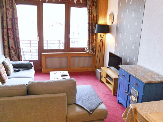 The Curling B building is situated right in the heart of Val Claret with very easy access to the shops, supermarket and restaurants and bars. It is also just 50 metres from the piste and the main meeting point for the ski schools, so everything is on your doorstep. The apartment is on the 4th floor of the Curling B building with one bedroom. There is a lovely sunny balcony that faces South and is accessible from the lounge. In the living area there are two sofas, one of which is a sofa bed and the dining table can comfortably sit up to 6 people.