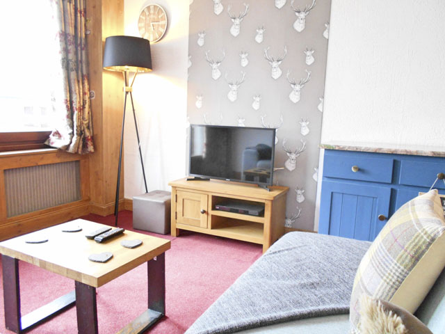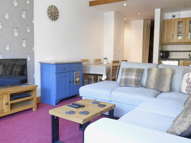The kitchen has a dishwasher, full sized integrated oven, coffee machine, fridge, kettle and plenty of pots, pans and utensils to cater for your group’s holiday. The bathroom has a bath with wall mounted shower attachment and wash basin, and there is a separate WC. In the double bedroom you’ll find plenty of storage in the fitted wardrobe units and there is also additional storage in the hallway by the bunk beds too. There is a SMART TV in the living area with access to the free apartment Wifi so you can watch television via the internet .