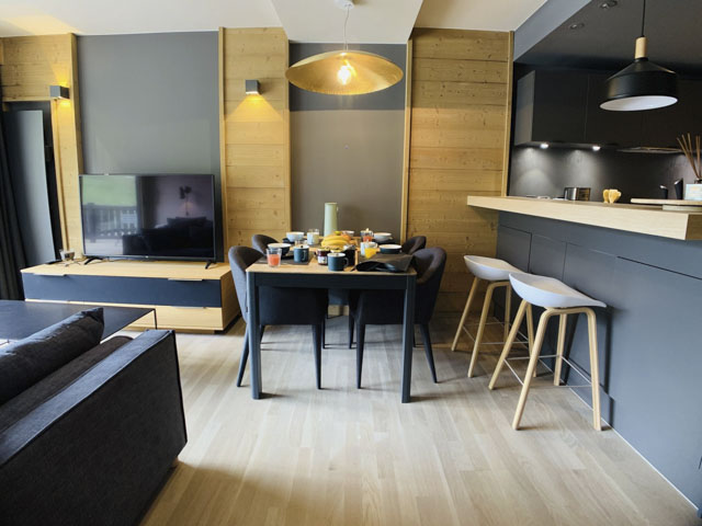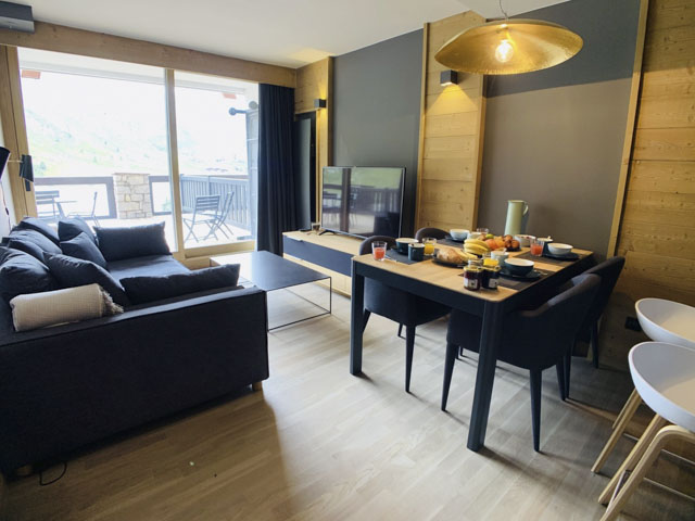 Contemporary 50m² 2 bedroom apartment for up to 5-6 people situated on the 1st floor boasting a 35m² south-facing terrace with outdoor furniture; offering sublime views across the Lake and mountains beyond. The perfect apartment for friends and family alike to enjoy and relax in after a hard day on the pistes or summer mountain activities ! Strategically located in the brand new Phoenix residence in heart of Tignes le Lac a mere stone's throw from the main Lac snowfront with lifts, ski schools, tourist office, swimming pool, sports center....